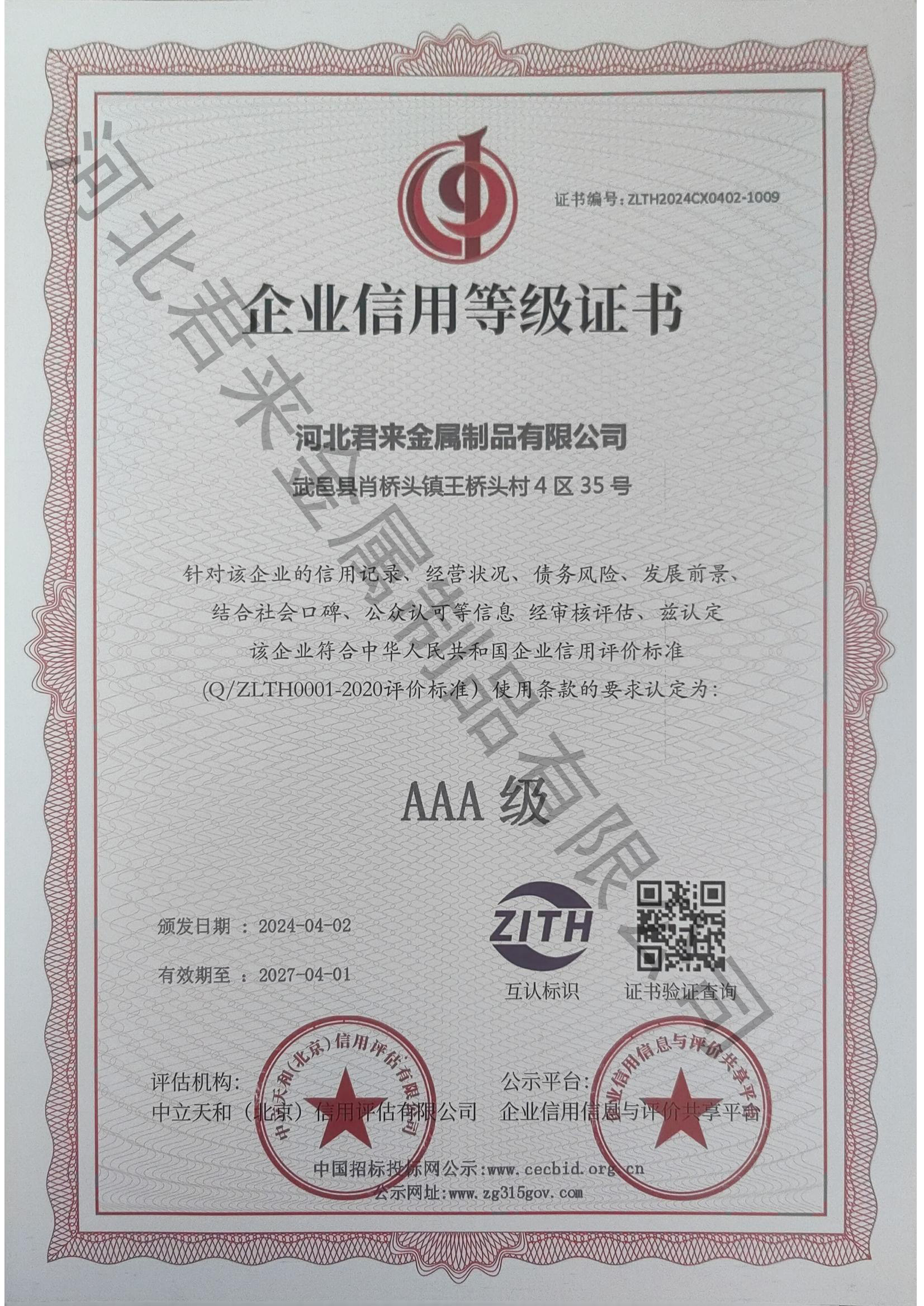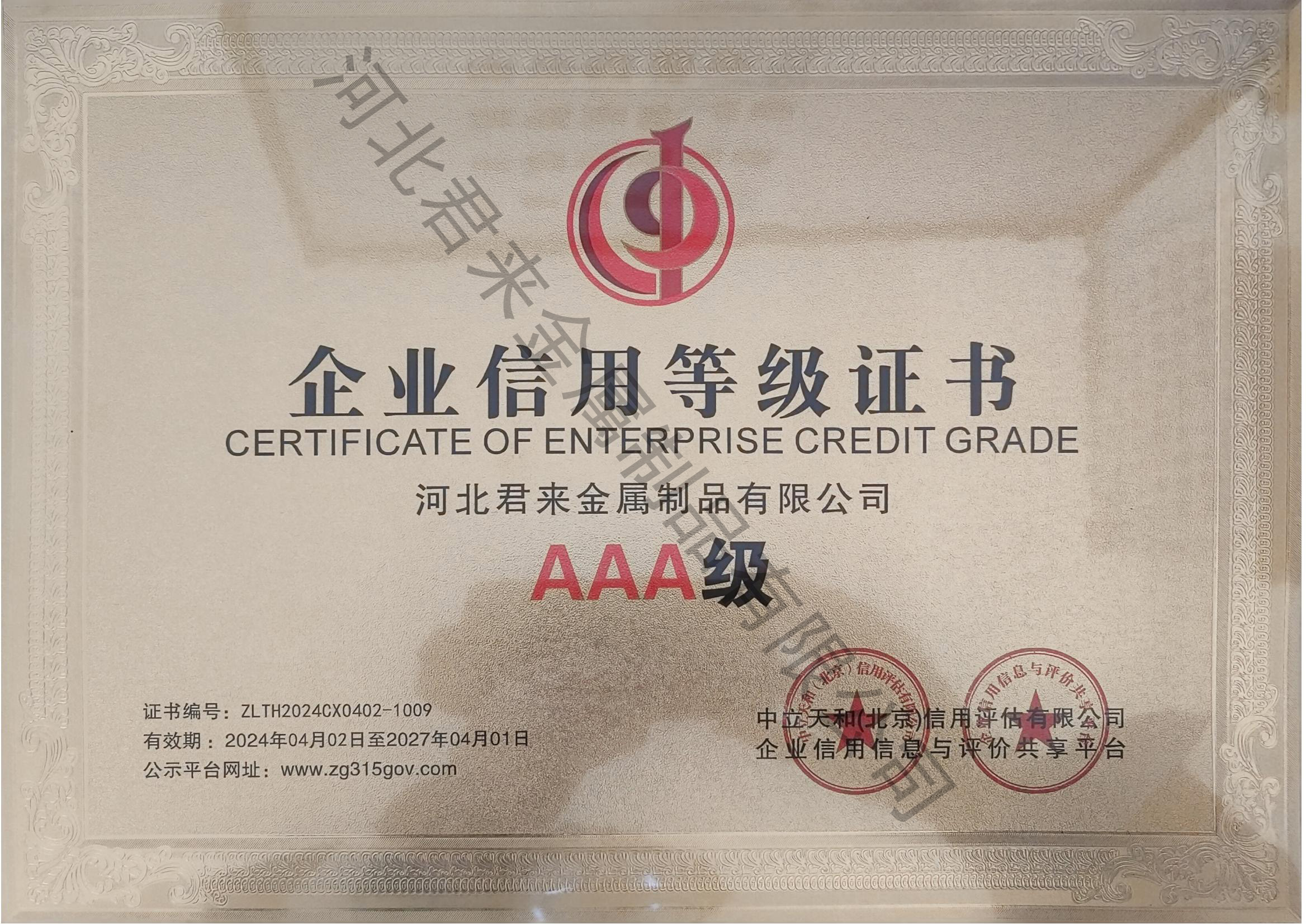企業(yè)信用等級(jí)證書(shū)
